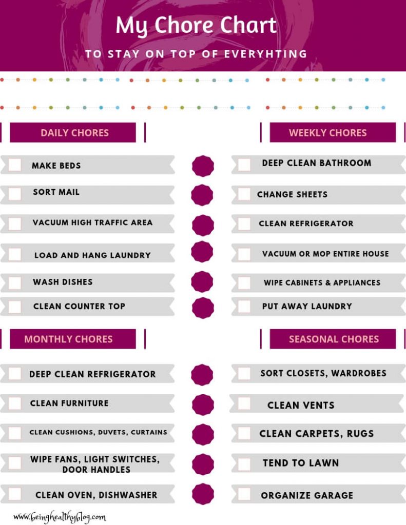 Chore Chart For Adults, Free Printable – Being Healthy Blog – Chore Chart For Adults Printable Free