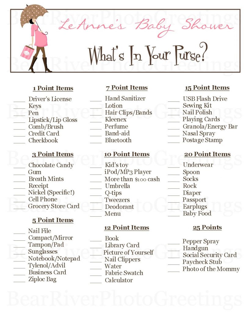 Free Printable Baby Shower Games What's In Your Purse – free printable baby shower games what's in your purse, If you are seeking for plenty of Cost-free printables, you’ve arrive to the correct position! At Joy is Home made, we discuss A great deal of totally free printables for many occasions! We now have computer online games and phrase search queries, home decor, vacation printables, gift ideas (including charge cards, tags, and tags!), as well as printables for children! There’s anything for anyone in this particular cost-free printables series – click on around and stay some time!