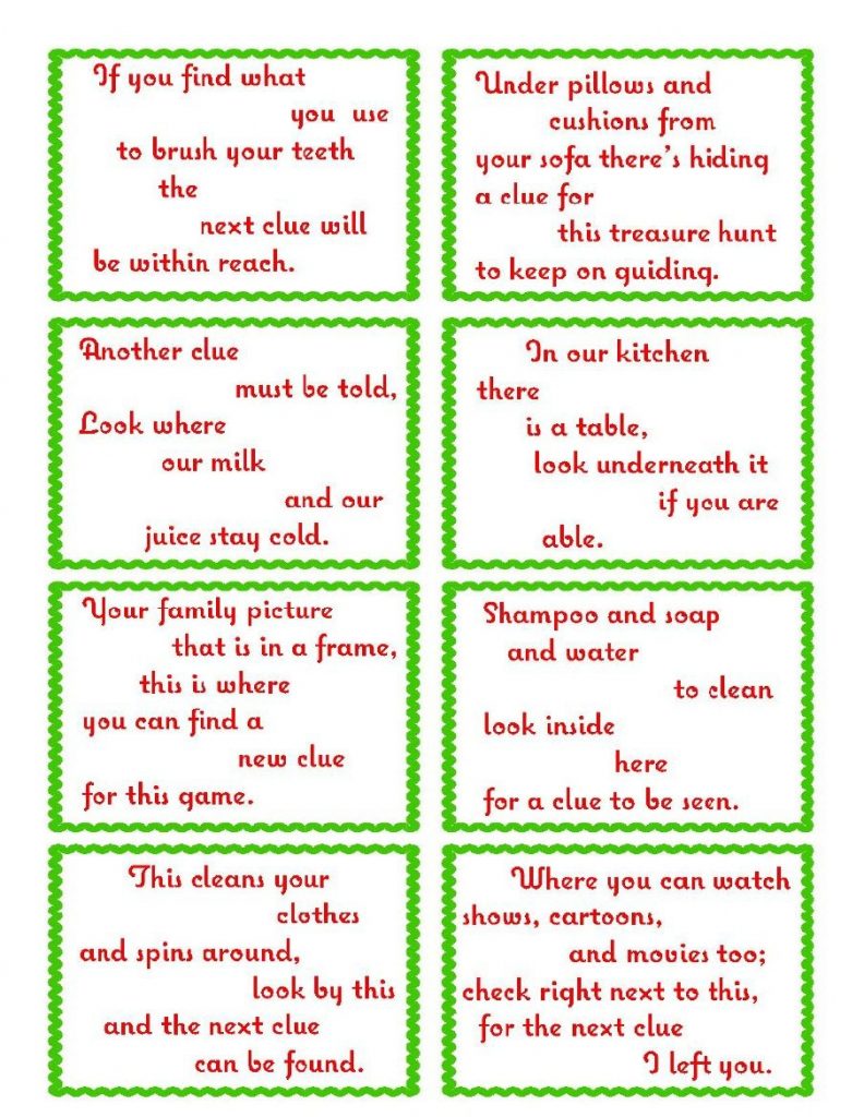 Free Printable Christmas Treasure Hunt Clues – free printable christmas present scavenger hunt clues, free printable christmas scavenger hunt clues, free printable christmas treasure hunt clues, If you are looking for plenty of Free of charge printables, you’ve come on the right place! At Contentment is Do-it-yourself, we discuss A lot of cost-free printables for those events! We certainly have computer games and phrase lookups, home decor, holiday break printables, gift ideas (which include charge cards, tags, and labels!), and also printables for youngsters! There is something for all within this free of charge printables collection – simply click all around and remain some time!
