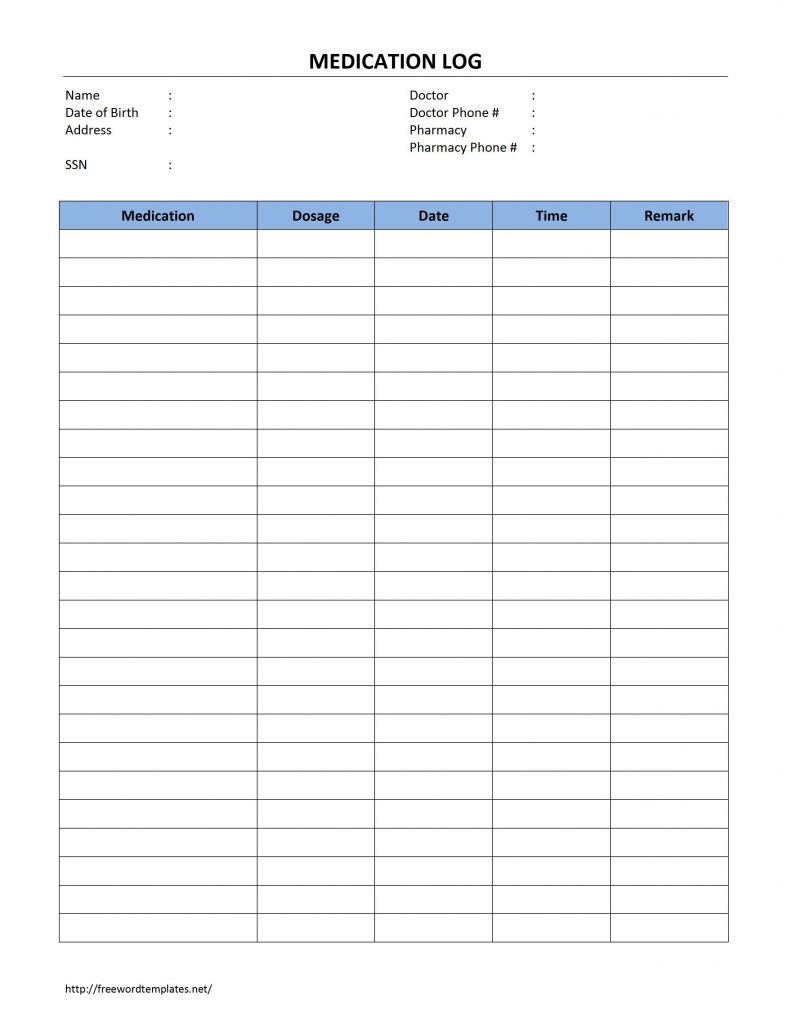 Medication Log – Free Printable Medication Log